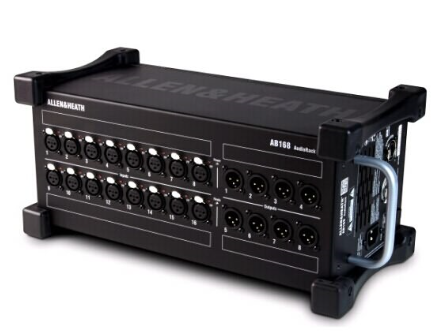 AB168具有16個話筒前置放大器,帶有幻象電源指示燈和8個XLR卡儂線路輸出。它在Allen & Heath的專利dSNAKE協議上運行,與Qu 和 GLD係列數字調音台兼容,補充了Allen & Heath現有的采用dSNAKE協議的19英寸輸入輸出機架產品--AR2412 和AR84。
