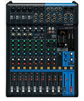12通道調音台:多6個話筒 / 12 個線路輸入 (4 個單聲道 + 4 個立體聲) / 2 編組母線 + 1 立體聲母線 / 2 AUX (包括 FX)