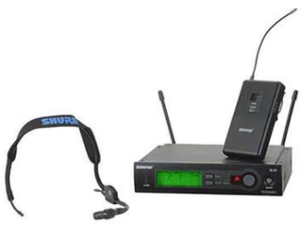 SLX 無線頭戴式係統,包括 SM35 心形電容頭戴式話筒、SLX1 腰包式發射機和 SLX4 分集接收機