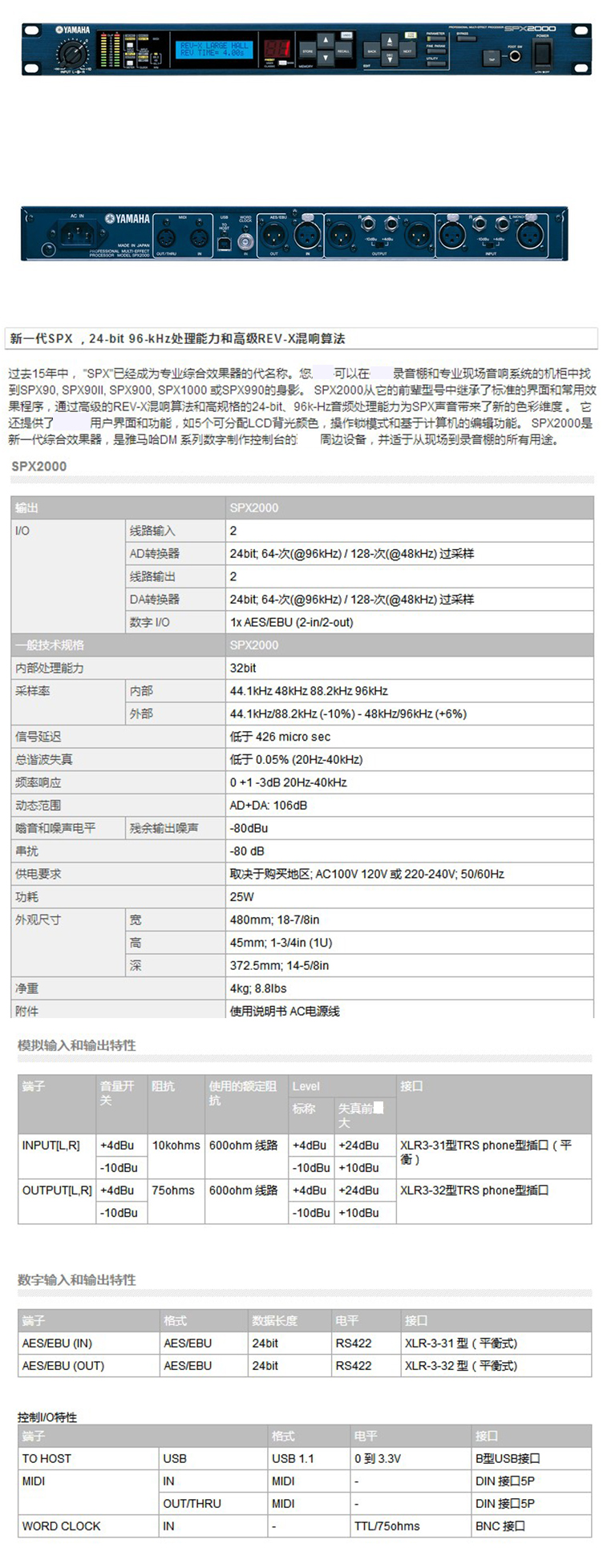 SPX2000 YAMAHA日本效果處理器